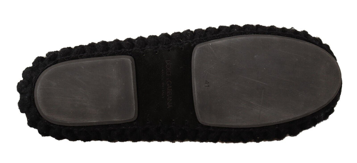 Dolce & Gabbana Black Slip On Ballerina Flats Wool Knit Shoes - EU41/US10.5
