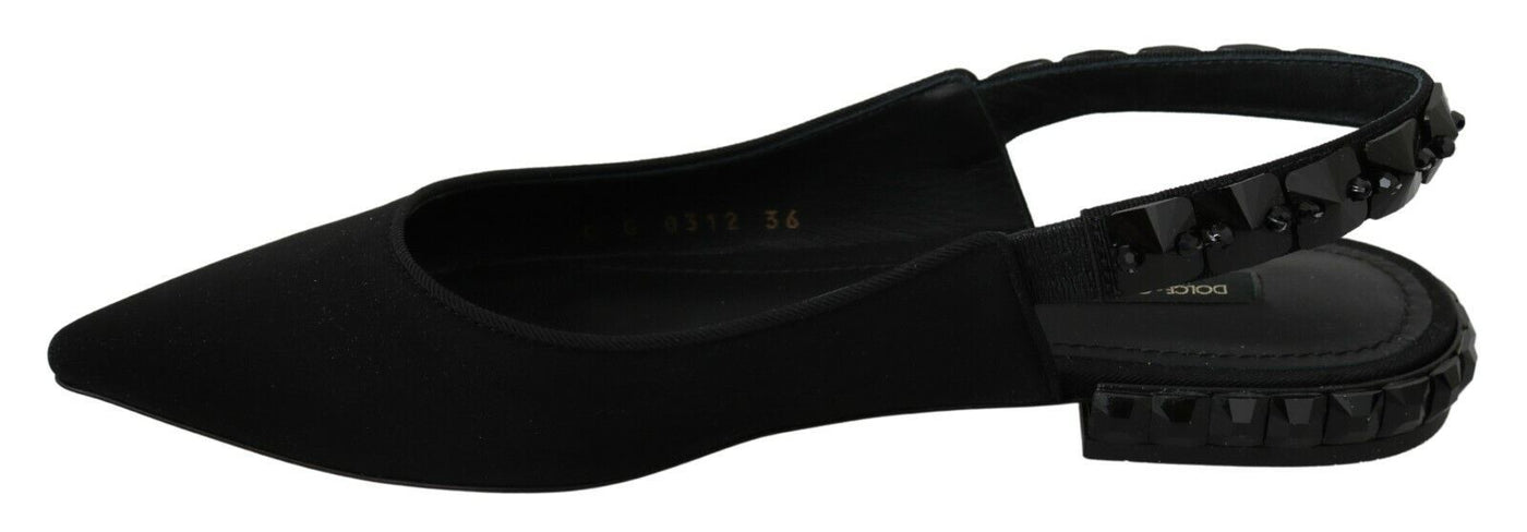 Dolce & Gabbana Black Flats Slingback Charmeuse Shoes - EU36/US5.5