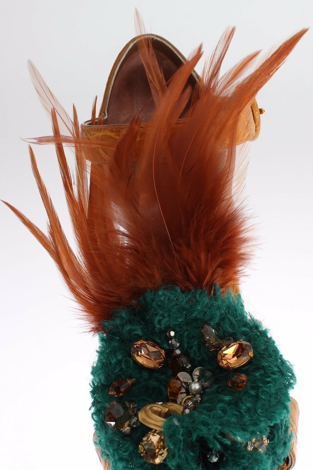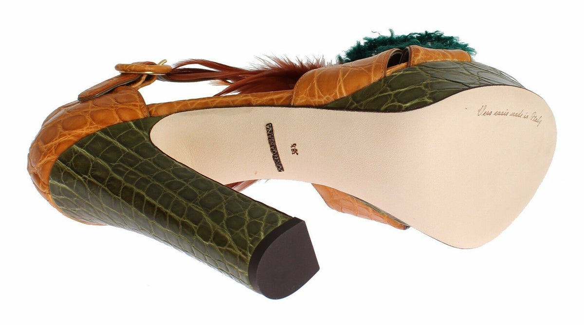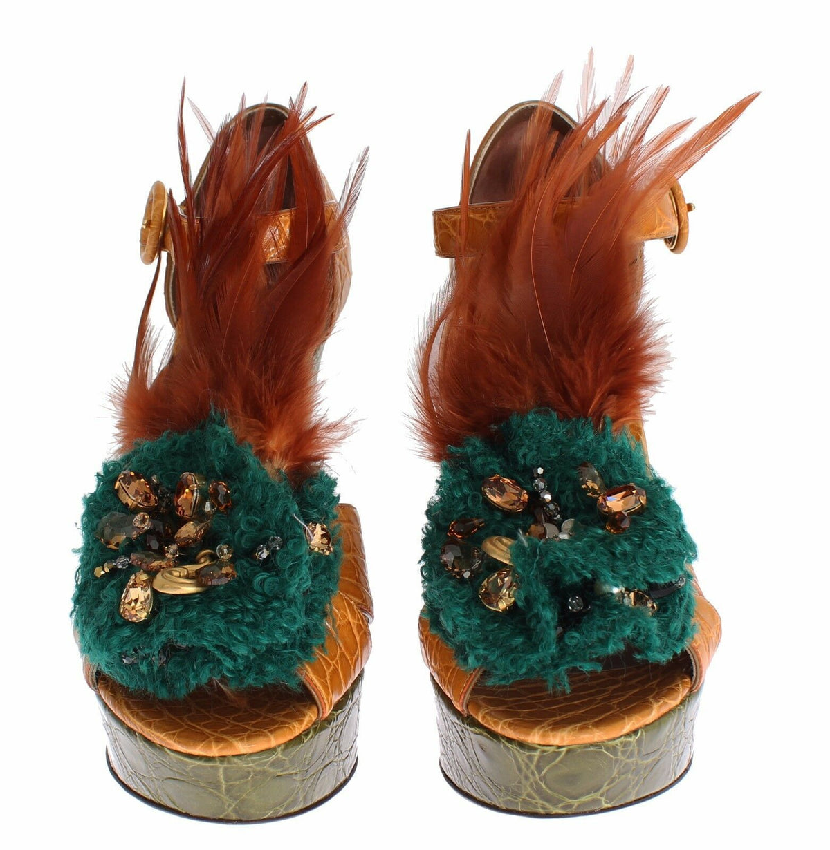 Inform when this item available Dolce & Gabbana Orange Leather Crystal Platform Sandal Shoes