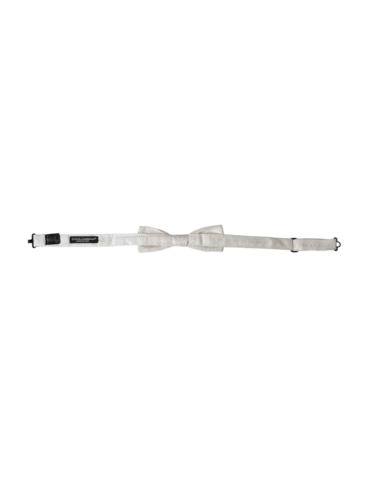 Dolce & Gabbana White Silk Patterned Adjustable Neck Men Papillon Bow Tie