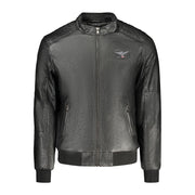 Elevate your style game with Accademia Militare’s sleek eco-leather jacket. Crafted for the modern man, this piece boasts functionality and sophistication. Featuring long sleeves, a handy trio of pockets, and a secure zippered front, it’s adorned with eye-catching appliques and the iconic brand logo. Perfect for a bold trendsetter ready to conquer the urban jungle.